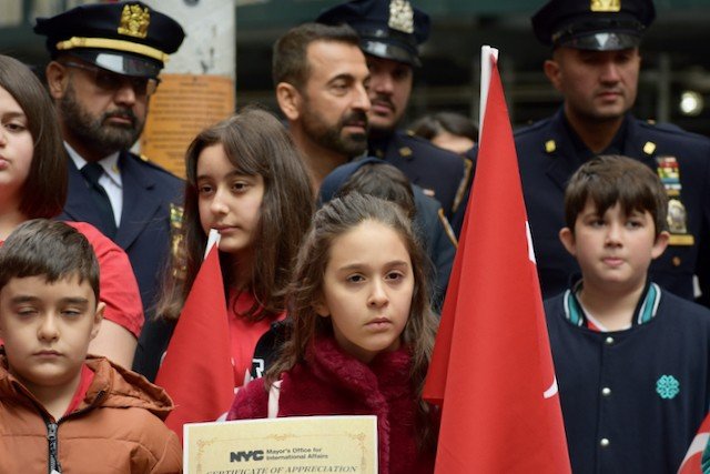 Wall Street’teki Bowling Green Park’ta düzenlenen törende Türk bayrağı göndere çekildi. Etkinliğe Türk ve Amerikalı yetkililer, öğrenciler ve Türk toplumunun temsilcileri katıldı.