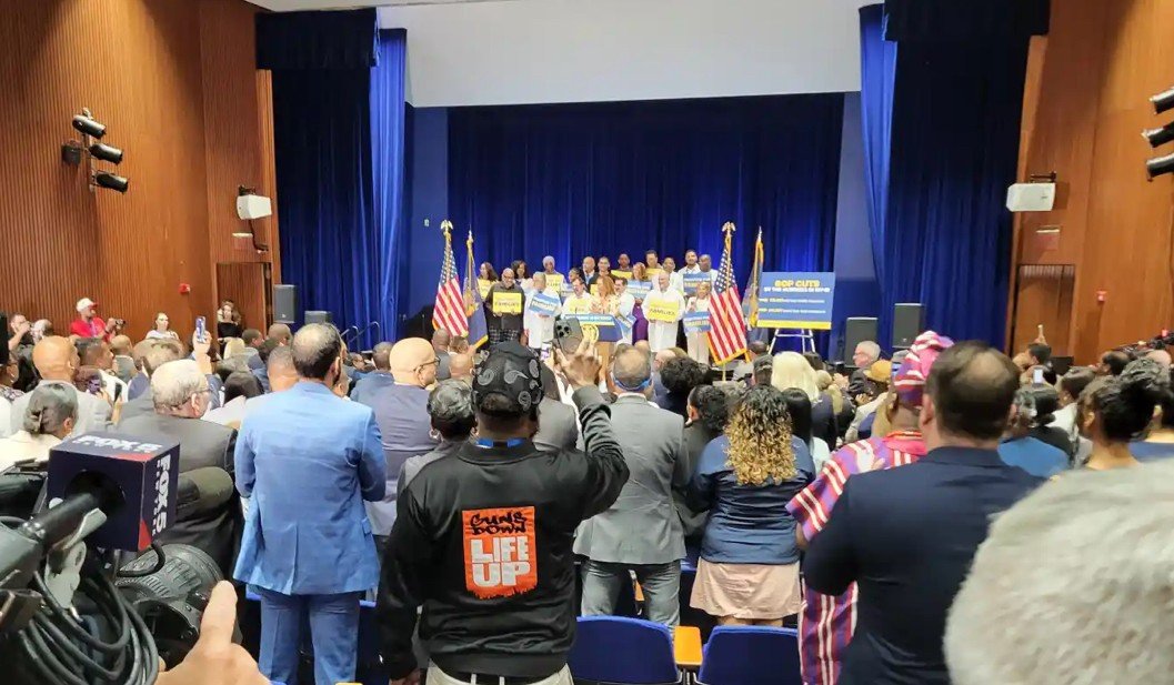 New York Valisi Kathy Hochul ve Temsilci Ritchie Torres, South Bronx’taki Lincoln Hastanesinde bir miting düzenleyerek Trump yönetiminin “Büyük Güzel Yasa Tasarısı” adıyla duyurduğu bütçe planına sert tepki gösterdi.